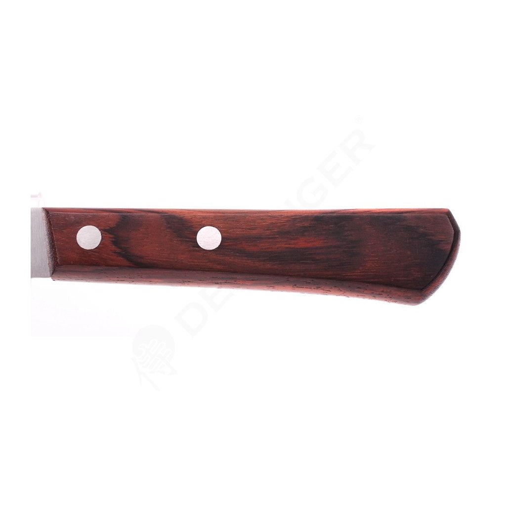 Das Gyuto/Chefmesser ist ideal für den vielseitigen Einsatz. Dank des spitz zulaufenden Messerrückens und der spitz zulaufenden Klinge hat es die ideale Form für jede Art des Schneidens. Es eignet sich zum Schneiden von Fleisch, zum Zerteilen von Fisch, zum Reinigen von Fleisch und Fisch, Obst und Gemüse. Mit der höheren Spitze können Sie auch Kräuter oder Nüsse aufspießen.