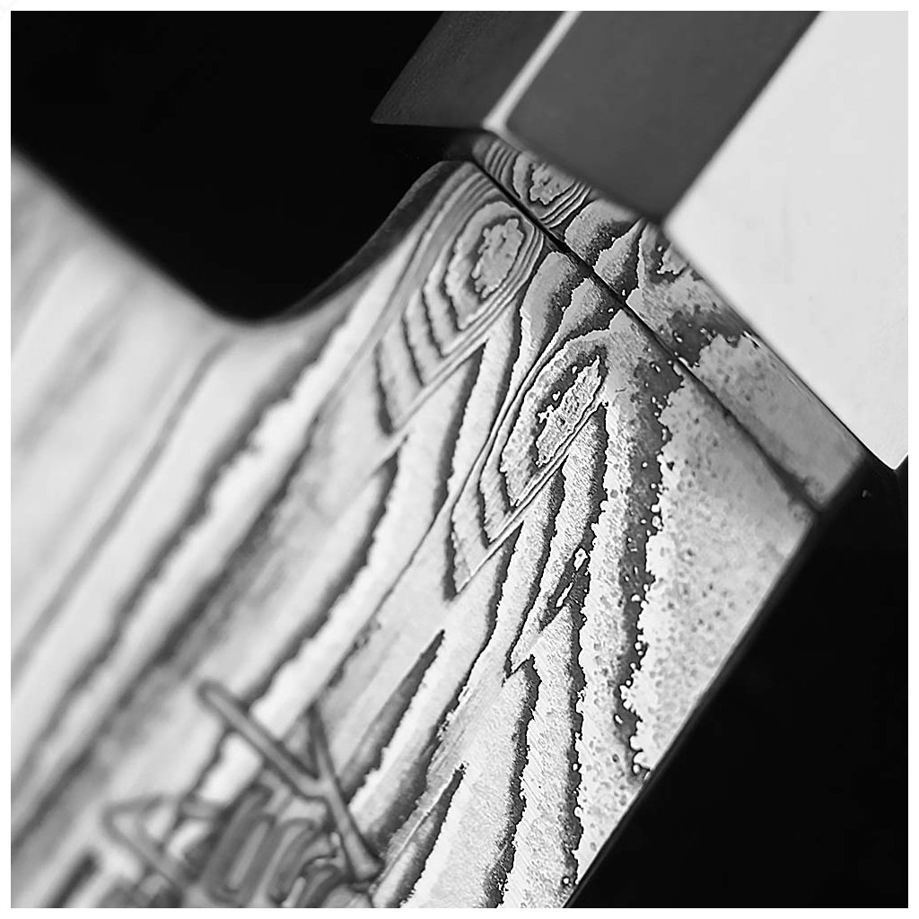 The blade core is made of Damascene steel with a hardness of 61±1 HRC, surrounded by 66 layers of two types of stainless steel. This layering ensures maximum toughness and durability. Raw pattern of hand-forged damascus. The uncooled, vivid surface with the distinctive pattern of the steel layers reveals the true character of the craftsmanship and gives each knife a unique identity. Precision workmanship guarantees easy maintenance and long-lasting sharpness, which can be easily restored by grinding on water stones.