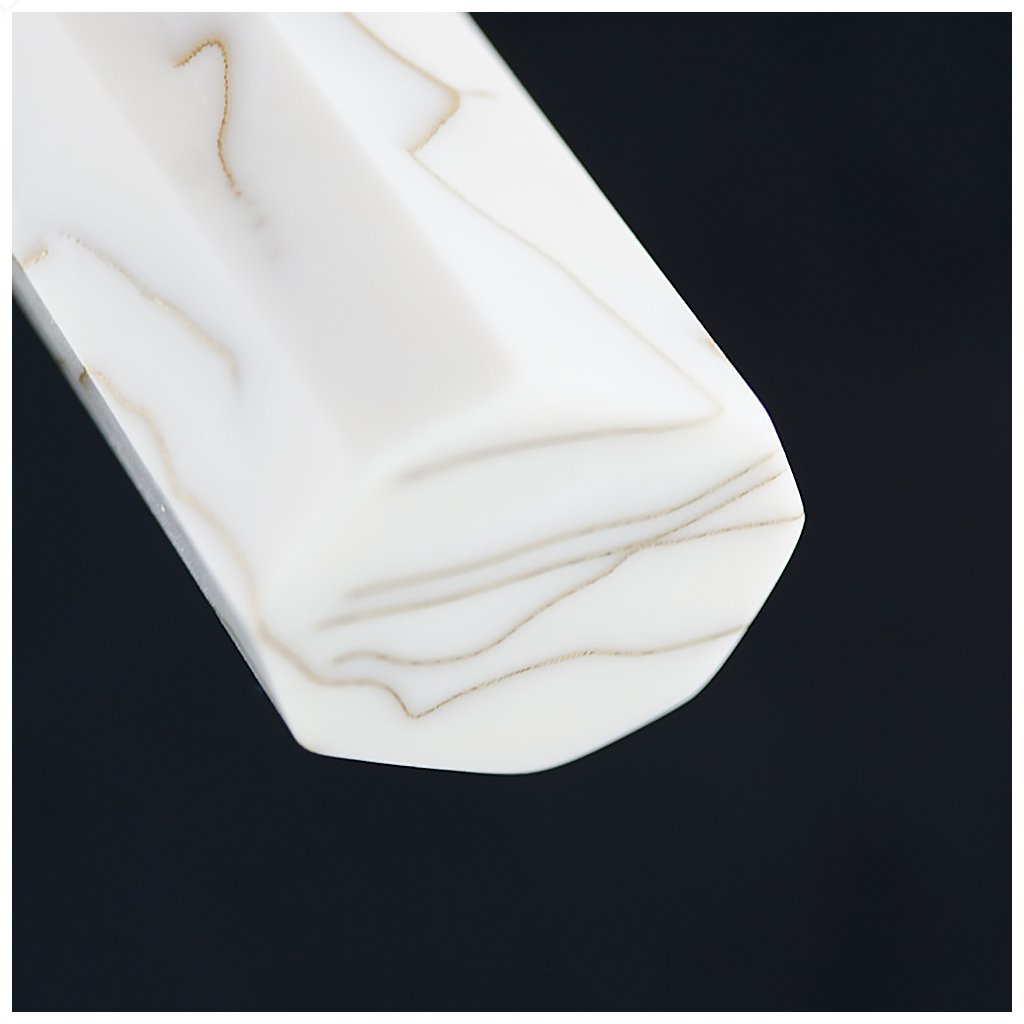 Handle in traditional octagonal design provides a secure and comfortable grip even in challenging conditions. The majority of the handle is made of white resin, while the part near the blade is made of stainless steel. This composite material is extremely resistant to moisture, temperature changes and mechanical wear, ensuring the handle's longevity and stability.