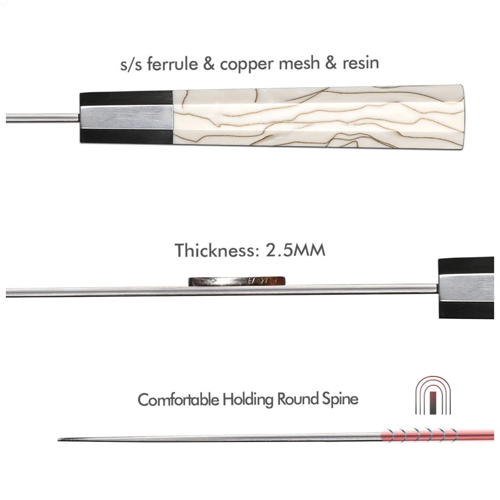 Handle in traditional octagonal design provides a secure and comfortable grip even in challenging conditions. The majority of the handle is made of white resin, while the part near the blade is made of stainless steel. This composite material is extremely resistant to moisture, temperature changes and mechanical wear, ensuring the handle's longevity and stability.