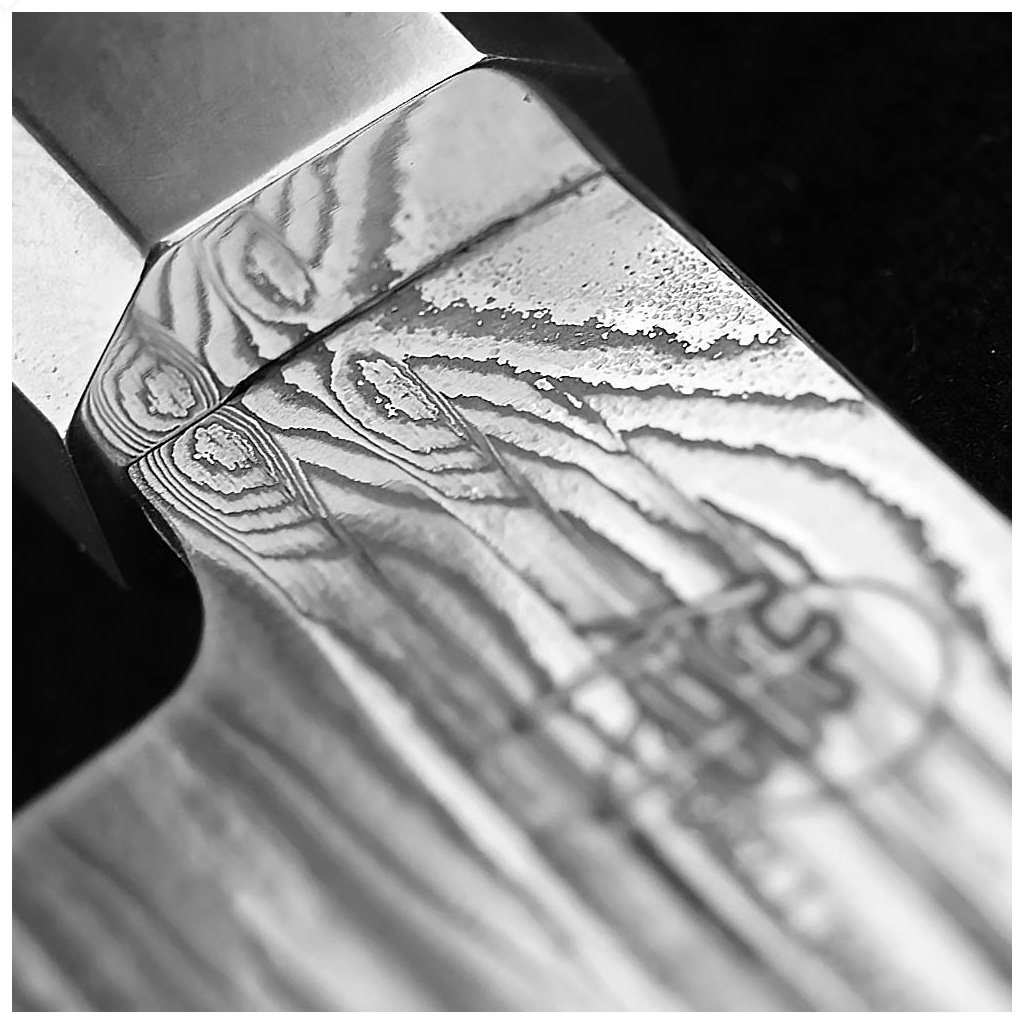 The blade core is made of Damascene steel with a hardness of 61±1 HRC, surrounded by 66 layers of two types of stainless steel. This layering ensures maximum toughness and durability. Raw pattern of hand-forged damascus. The uncooled, vivid surface with the distinctive pattern of the steel layers reveals the true character of the craftsmanship and gives each knife a unique identity. Precision workmanship guarantees easy maintenance and long-lasting sharpness, which can be easily restored by grinding on water stones.