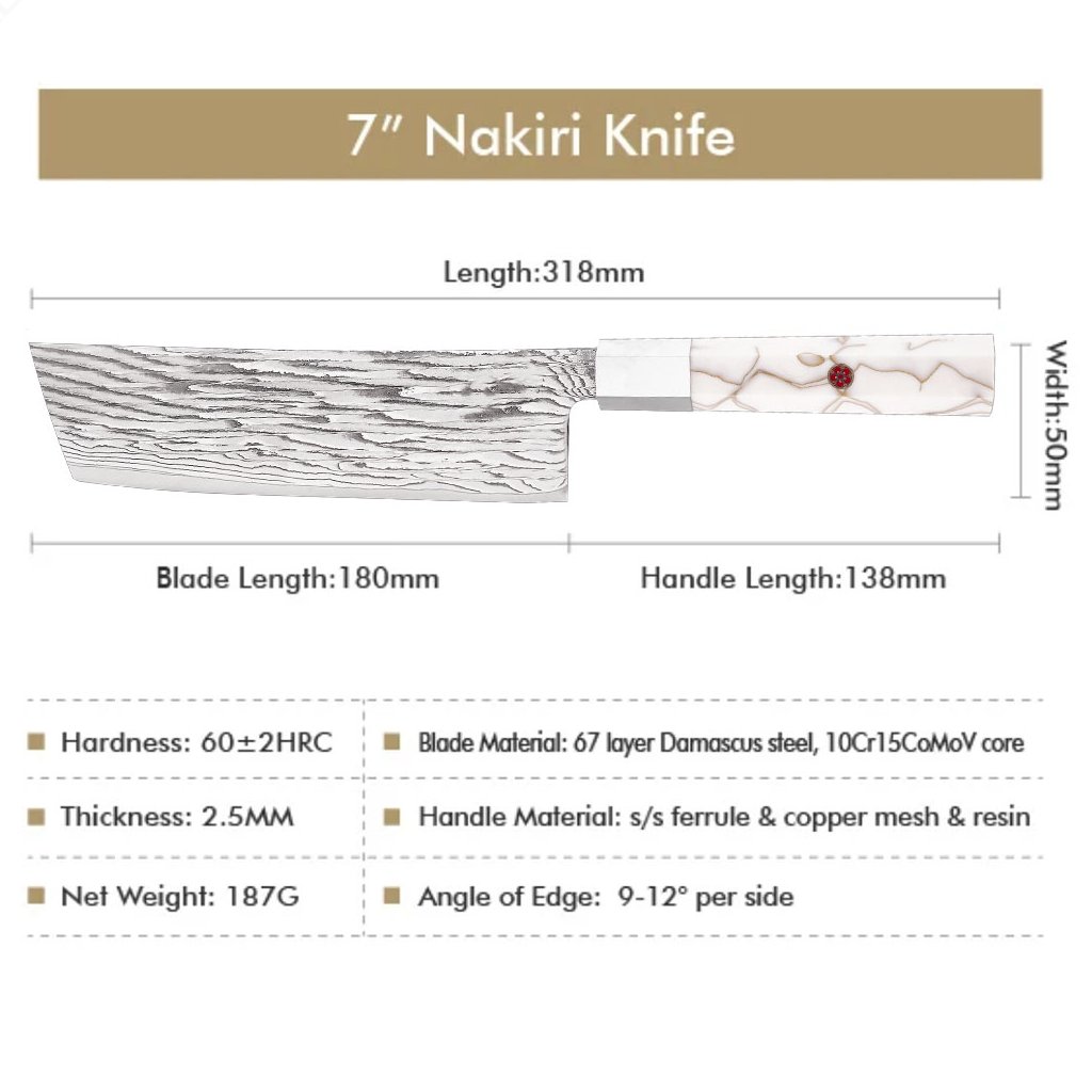 The Nakiri knife is a traditional Japanese knife specialising in vegetable processing. Its characteristic feature is a straight blade with a rectangular shape and a square tip that allows maximum contact with the cutting board along the entire length of the cut. This makes slicing fast, smooth and very precise. The straight blade is ideal for both push-cut and up-down chopping techniques without rocking the blade. In addition, the wide blade makes it easier to transfer the cut ingredients from the cutting board and provides better control when working. The Nakiri is usually double-edged, making it suitable for both right- and left-handed users. The Nakiri's simple, clean design and high functionality make it popular not only among professional chefs, but also among home enthusiasts who want to achieve perfect results when slicing vegetables.