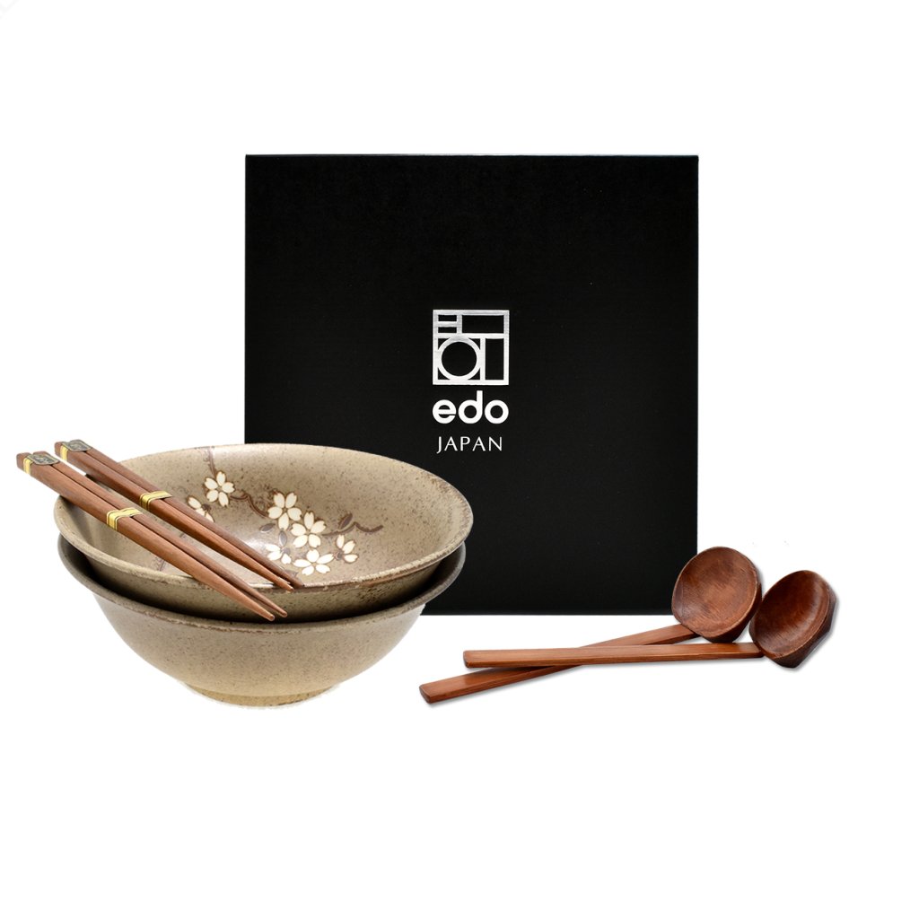 Treat yourself to an exceptional experience when serving noodle dishes with this elegant set of two bowls from EDO Japan. The bowls are hand-glazed in natural shades have a subtle, authentic Japanese look. Their deep shape makes them ideal for ramen, udon, pho, or soups.