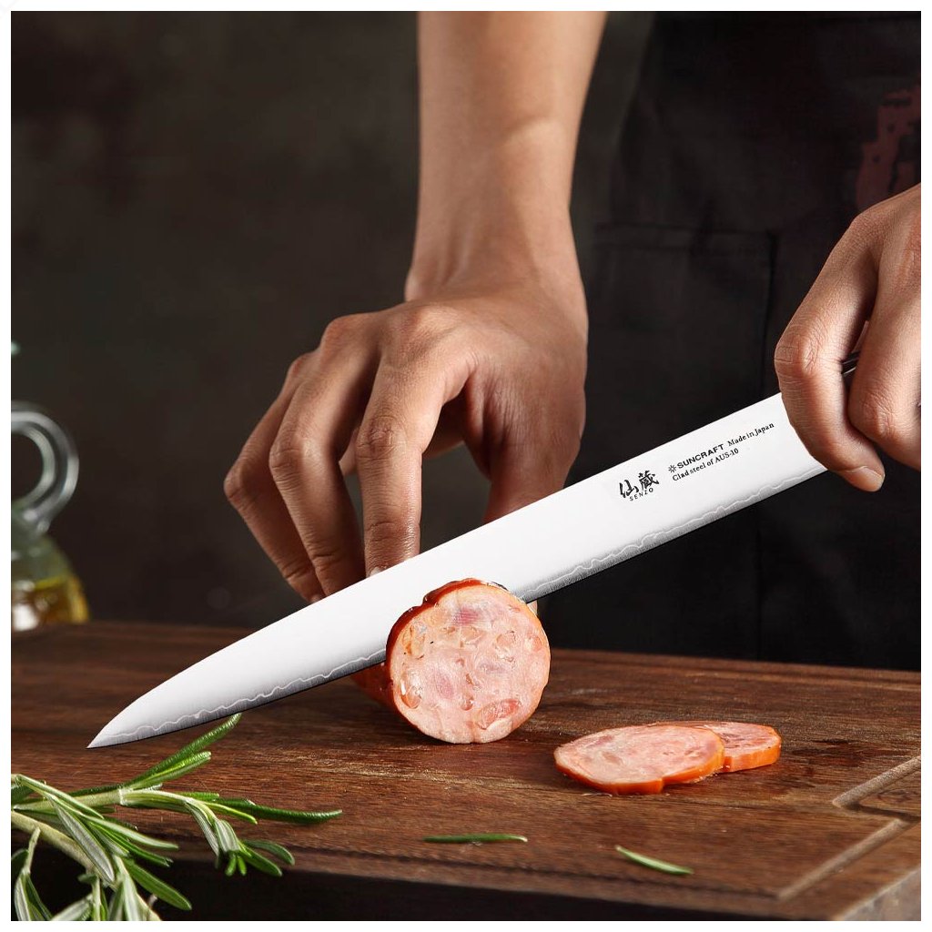 Suncraft places great emphasis on choosing quality materials. They use high carbon stainless steel, which ensures a sharp and durable blade. Some of their products also use Damascene steel, which is known for its strength and unique pattern on the blade.