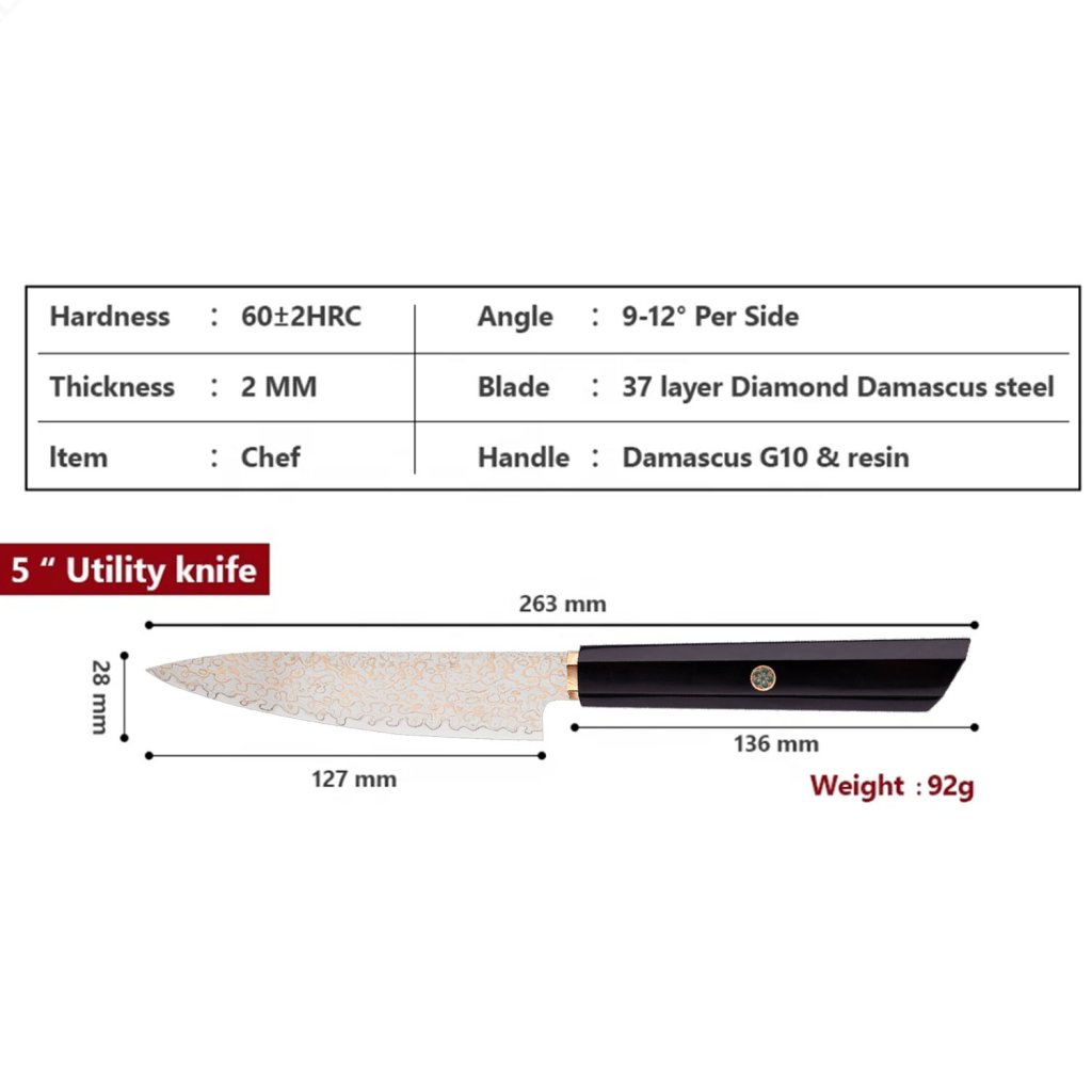 Utility Dellinger® Resin Black Gold Damascus peeling knife
