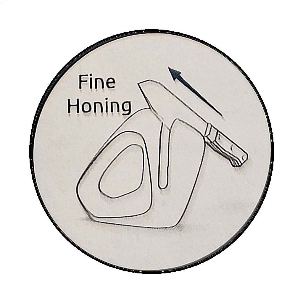 - Jemné dobrušování: 3–5 tahů (špička nahoru) viz obrázek u produktu (fine honing)