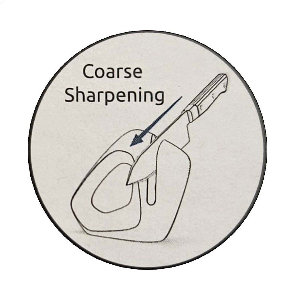 - Hrubé broušení: 3–8 tahů (špička dolů) viz obrázek u produktu (coarse sharpening)