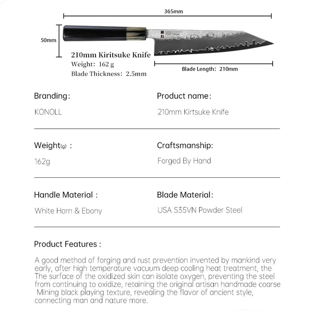 Kuchyňský nůž Chef/Kiritsuke 210 mm Konoll® Silvery Forging