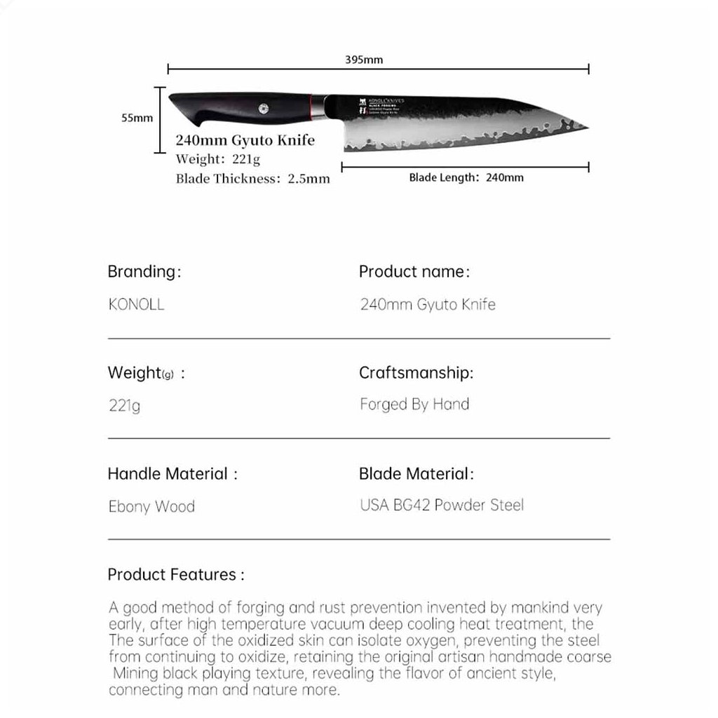 Nóż kuchenny Chef/Gyuto 240 mm Konoll® Black Forging