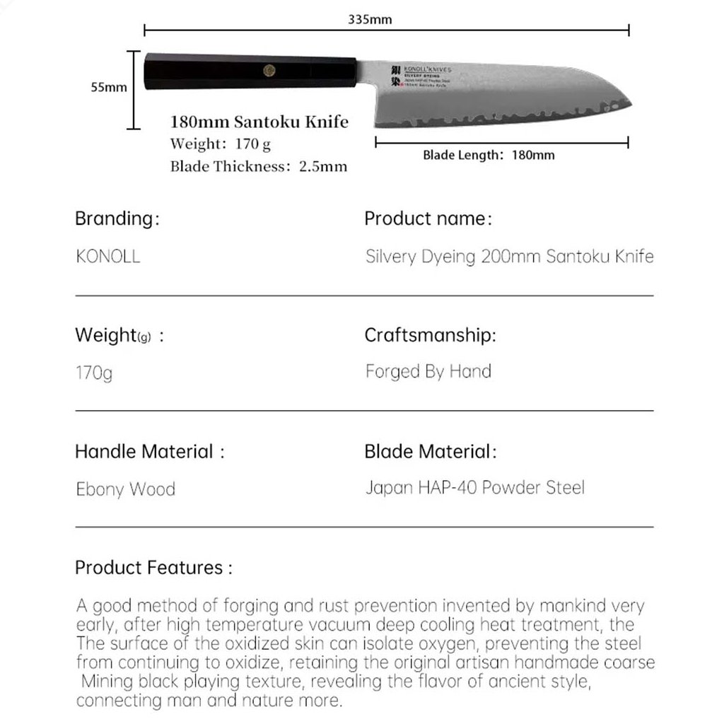 Nóż kuchenny Santoku 180 mm Konoll® Silver Dyeing