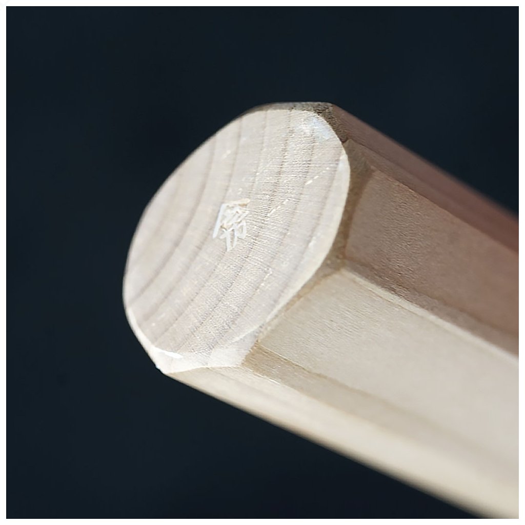 Osemuholníková rukoväť je vyrobená z dreva HO (magnólia). Magnólia je vďaka svojim antiseptickým vlastnostiam skvelou voľbou na rukoväť, ale keďže ide o mäkké drevo, pomerne rýchlo mení farbu, preto odporúčame udržiavať rukoväť čistú. Je vždy starostlivo ručne leštený, ergonomicky tvarovaný a navrhnutý na vynikajúce ovládanie rukou. Tento nôž je vhodný pre pravú aj ľavú ruku.