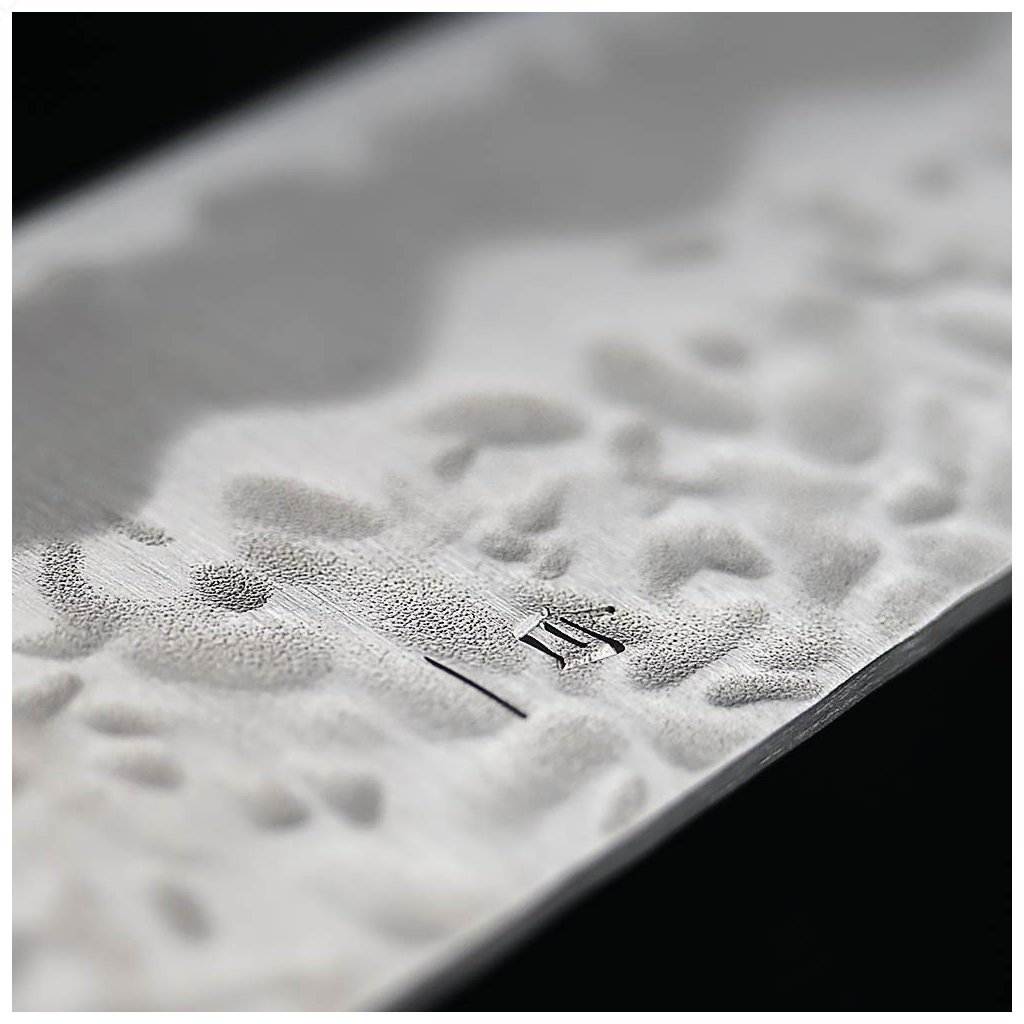 Rúčka série Hokiyama Saiun je vyrobená z jemného magnóliového dreva, ktoré je pevné, odolné a príjemné na dotyk. Tradičný osemuholníkový tvar zaisťuje bezpečný a pohodlný úchop pri krájaní, aj pri dlhšej práci v kuchyni. Estetiku rukoväte dotvára elegantná podpera z byvolieho rohu, ktorá dodáva kontrastný akcent medzi čepeľou a drevenou časťou. Kombinácia magnóliového dreva a tmavého byvolieho rohu vytvára luxusný vzhľad, ktorý zodpovedá vysokej kvalite celej série Saiun. Každá rukoväť je starostlivo vyrobená tak, aby nielen krásne vyzerala, ale aj prispievala k ideálnej rovnováhe noža a pohodlnému ovládaniu pri každom reze. Táto rukoväť spája funkčnosť, pohodlie a eleganciu, čo dokazuje, že pri nožoch Saiun bol zohľadnený každý detail.