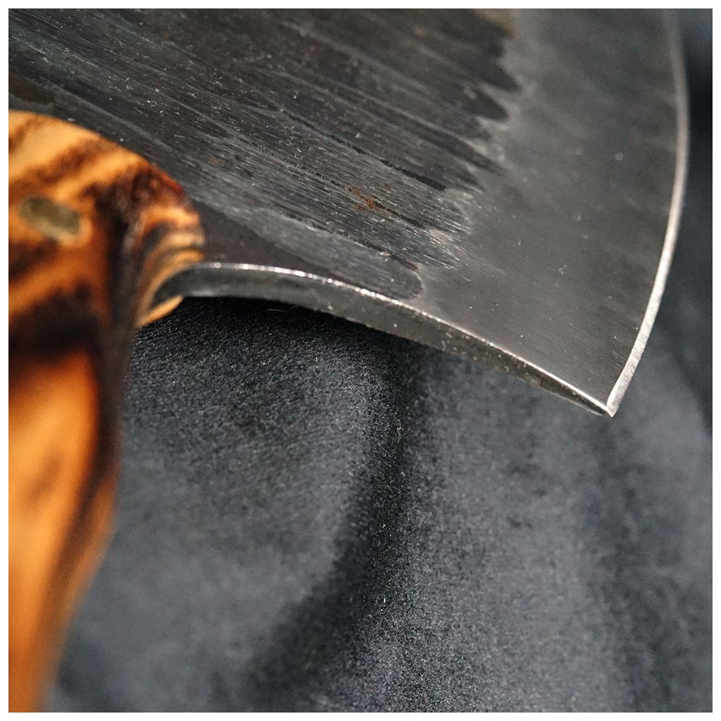 Sekanie, krájanie, vykosťovanie, čistenie mäsa a zeleniny – nič pre tento nôž nie je problém. Srbský nôž Kokki je ručne kovaný a spracovaný z ocele D2. Po presnom a starostlivom kalení, popúšťaní a žíhaní dosahuje tvrdosť HRC 60-62. Jeho čepeľ nič nepoškodí. Srbský nôž Dellinger KOKKI má 4 mm silnú húževnatú čepeľ, ktorá vám bude slúžiť po mnoho rokov. Nádherná rukoväť tohto noža je ručne tvarovaná z olivového dreva a je ozdobená a spevnená 2 okrasnými nitmi.